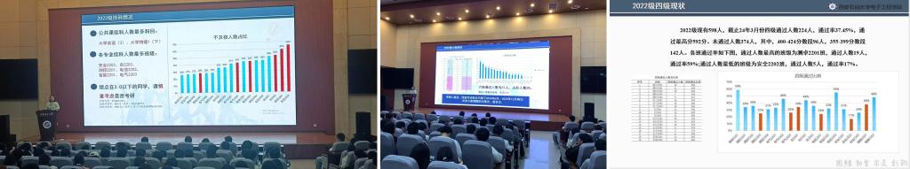 随后,各年级辅导员老师还指出要继续加强班级建设,利用本次年级大会展示了四六级通过率、挂科率等班级建设各项指标,旨在让各位同学清晰班级定位,补齐班级建设数据短板,在年级内形成你追我赶的良好学习氛围。