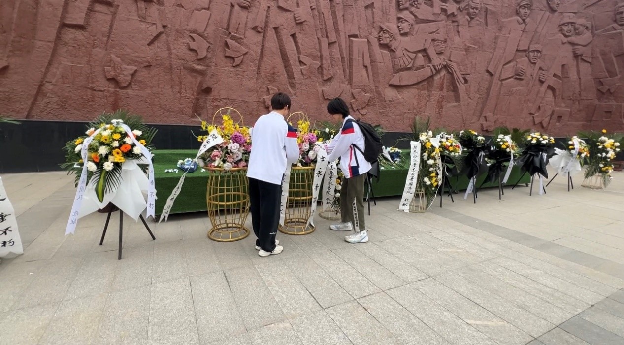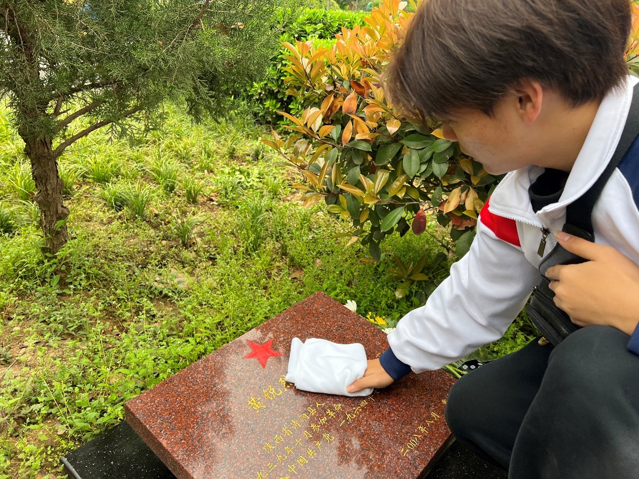 时光清浅,岁月有痕。在西安烈士陵园,同学们邀请现场的参战老兵共同参与活动,大家怀着敬畏之心,轻轻地为烈士擦拭墓碑,拂去岁月留下的灰尘,敬献鲜花,表达对英烈们的深切缅怀和崇高敬意。在陵园浮雕广场,大家共同肃立,默哀怀念,敬献花篮并整理挽联。同学们面对党旗,庄严肃立,重温入党誓词,铭记革命先烈的崇高精神和牺牲奉献。最后,大家跟随着现场讲解员的讲述聆听着红色革命的故事,大家认真倾听,不时驻足观看,久久沉思。