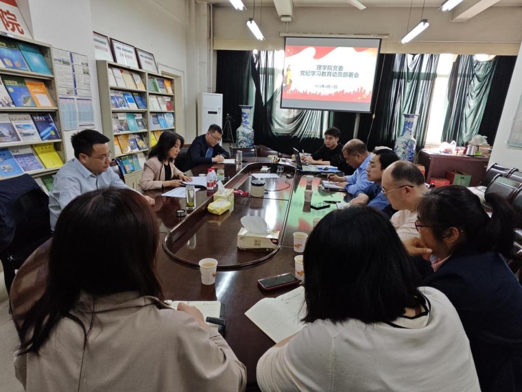 4月15日下午,理学院在雁塔校区东方石油楼501室召开了党纪学习教育动员部署会,学院领导班子成员、党委委员、党支部书记参加了会议,会议由学院党委书记廖敏主持。