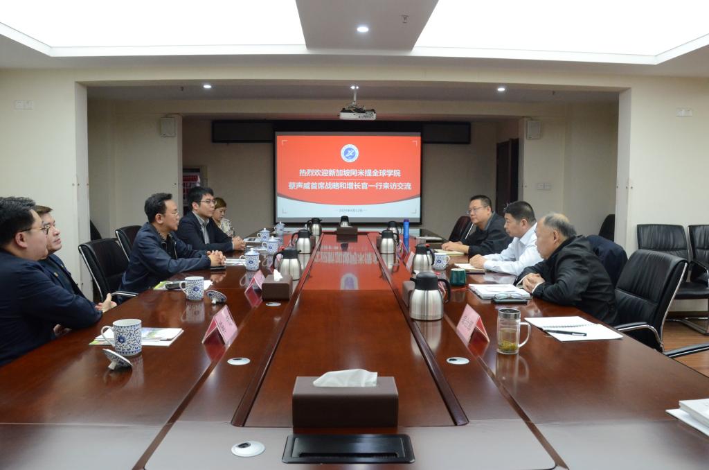 4月12日下午,新加坡阿米提全球学院区域首席执行官钟吉良教授、首席战略和增长官蔡生威博士等一行6人来beat365继续教育学院座谈交流。继续教育学院党总支书记耿岭主持座谈会,副院长吴民生、刘小波及相关科室负责人,国际教育学院(丝路能源学院)相关科室负责人参加座谈会。