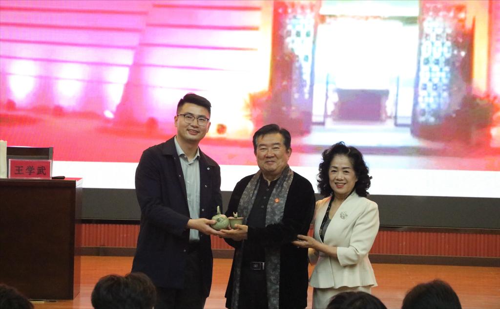 王学武夫妇向学校赠送柴窑标本。