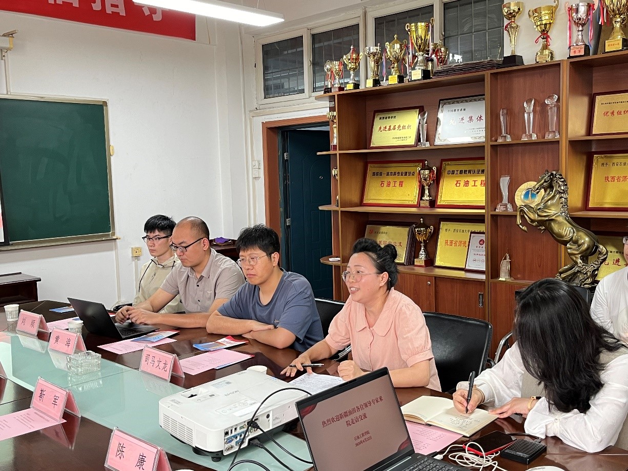 4月22日,石油工程学院在华油能源楼603会议室举行新疆油田公司走访交流座谈会。新疆油田公司实验检测研究院党委书记靳军、勘探开发研究院高级专家覃建华、勘探研究所党总支书记吴爱华、人力资源部管理科副科长陈康,石油工程学院院长黄海、党委书记司马文龙、副院长刘顺、科研与研究生办公室主任王小香和在读博士、硕士生代表等30余人参加了会议。会议由石油工程学院党委副书记张建高主持。