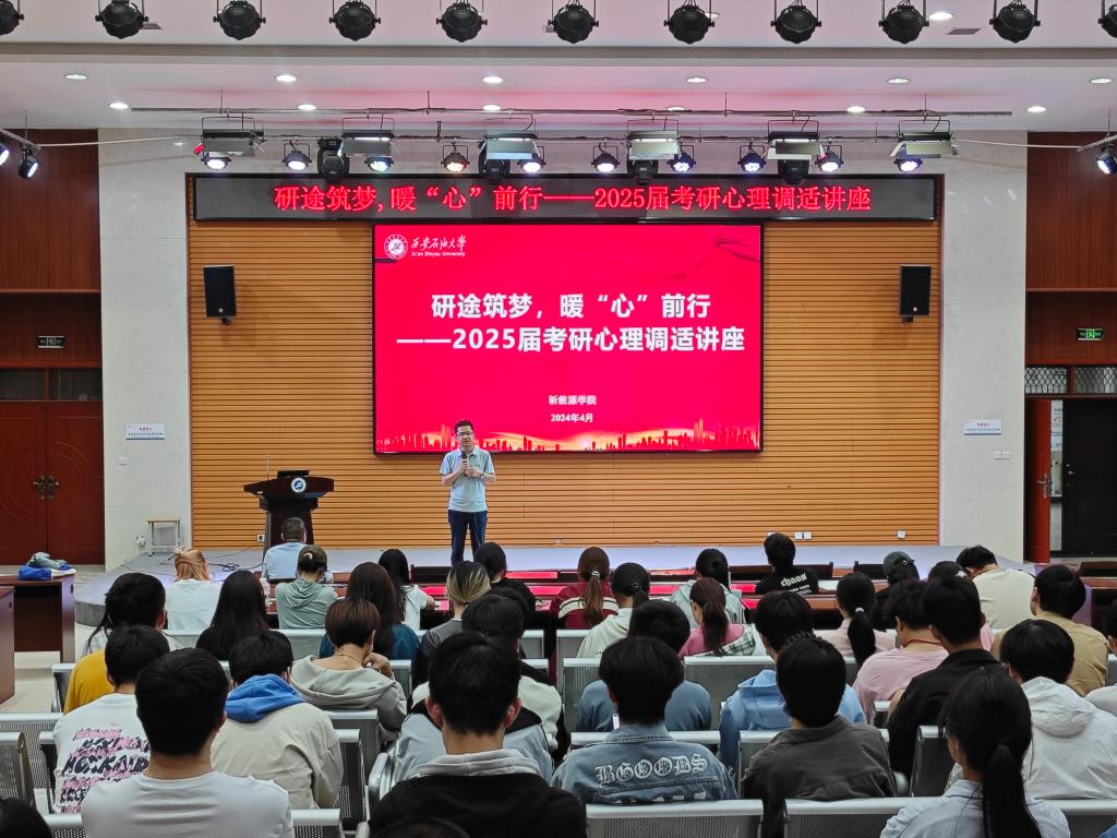 为营造良好的学习氛围,进一步夯实“三全育人”工作机制,帮助2025届本科毕业生明确考研定位和方向,充分调动学生的学习主动性,新能源学院“沿途筑梦 暖‘心’前行” 2025届考研心理调适讲座在鄠邑校区崇文楼118多功能报告厅举行,本次讲座特邀beat365学生心理成长指导中心闫高斌担任主讲,学院2021级全体学生参加,学生工作办公室主任马武军主持讲座。