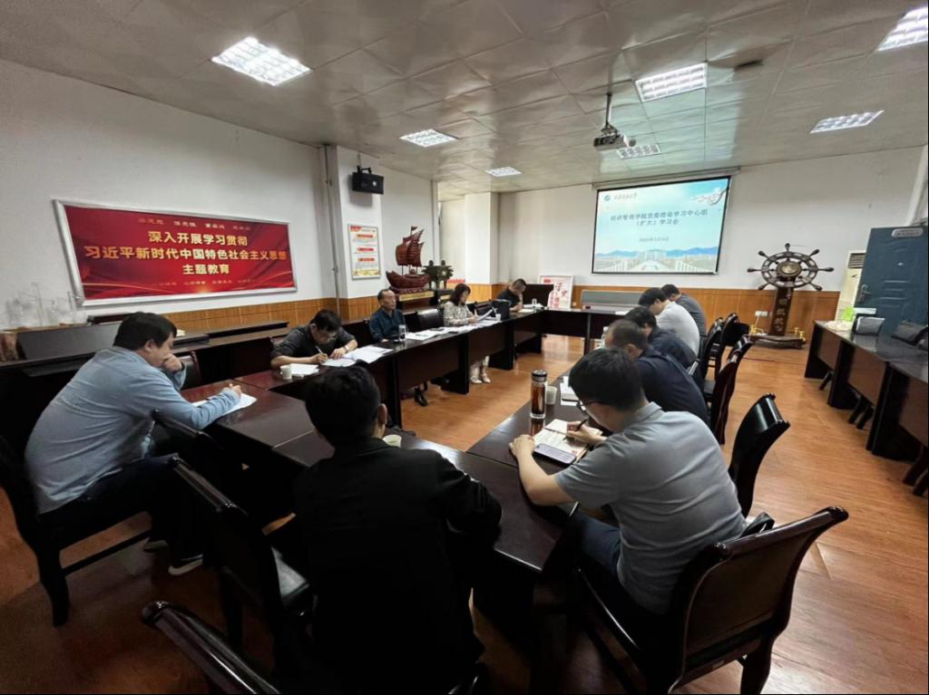 5月9日,经济管理学院党委召开理论学习中心组(扩大)学习会,会议按照“第一议题”学习制度要求,专题学习中共中央办公厅印发的《关于在全党开展党纪学习教育的通知》,集中学习《中共beat365官方网站委员会深化干部作风能力提升年暨“作风、教风、学风”建设工作实施方案》及相关工作会议精神等内容。学院党委理论学习中心组成员、教工党支部书记和各系、办公室主任参加会议。学院党委书记谈建勤主持学习会。