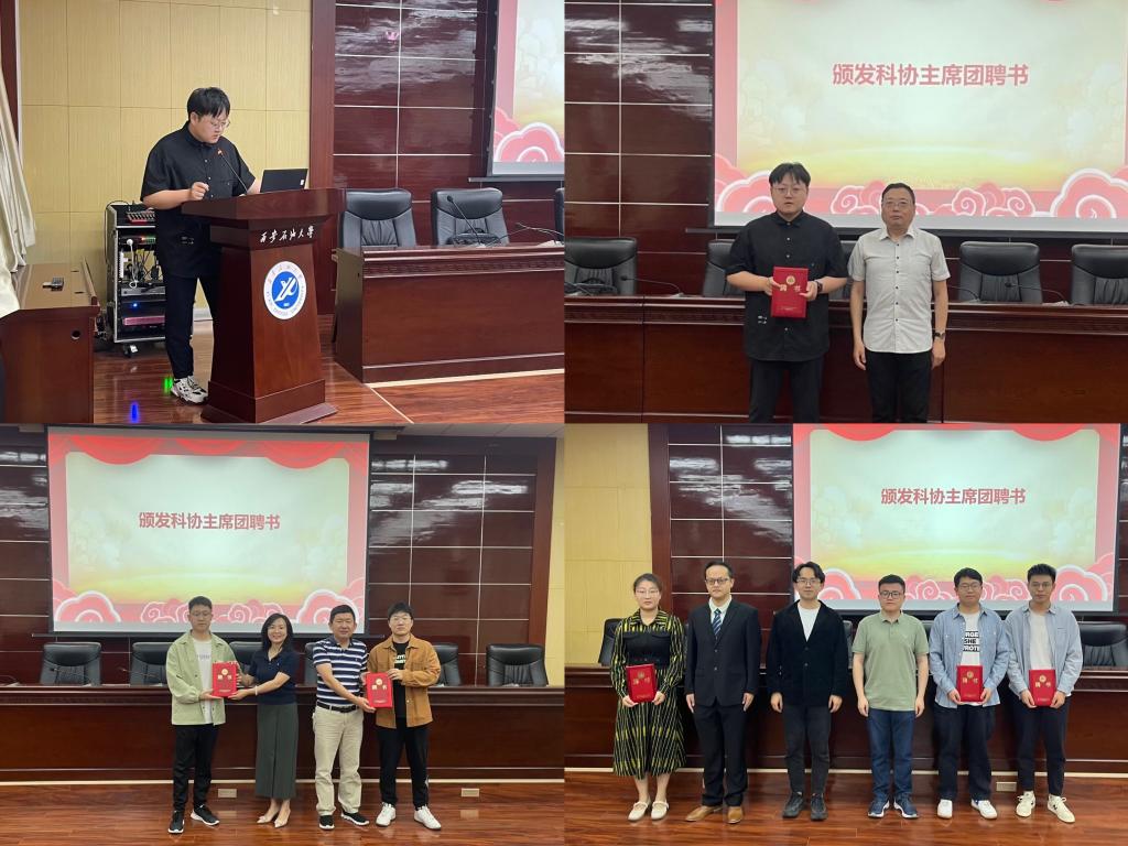 会上,地球科学与工程学院副院长党伟代表研究生科学技术协会筹备组向全体参会人员汇报了筹备工作情况,包括筹备背景和初衷、研科协简介和组织架构、组织动员和选拔结果以及研科协的发展规划,并对学院领导的大力支持和所有参与筹备工作的团队成员表达了感谢。随后,宣读了研科协主席团任命文件,并邀请学院领导及校外专家为首届研究生科学技术协会成员颁发聘书。