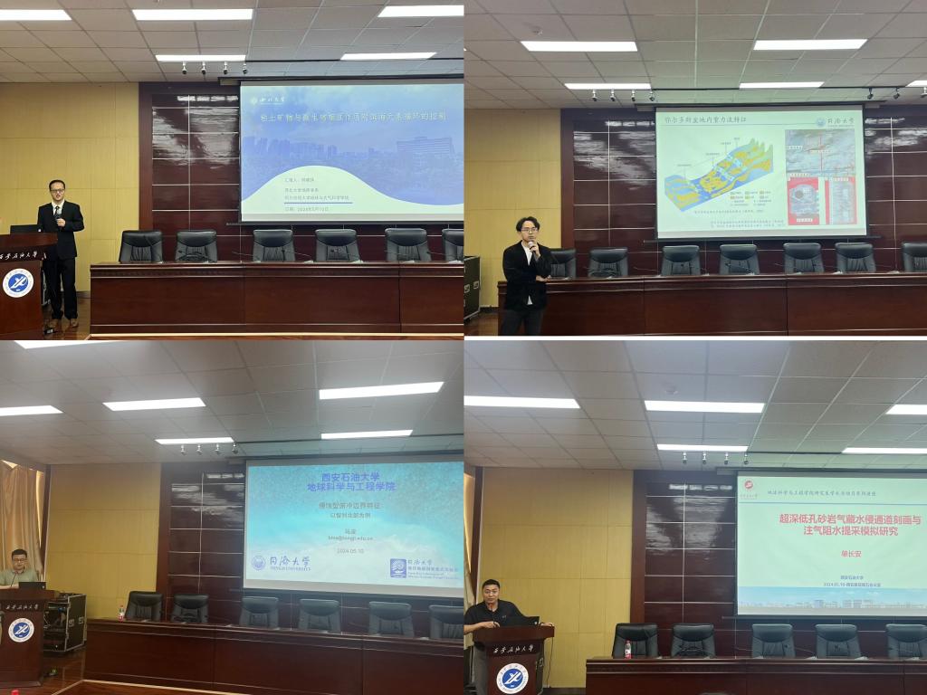 在大会报告环节,西北大学教授、国家优青郝威铎,同济大学研究员、上海市领军人才吴南,同济大学研究员、上海市白玉兰人才马波以及beat365官方网站副教授单长安为师生们作了精彩纷呈的学术报告。其中,郝威铎教授作了题为《粘土矿物与微生物相互作用对滨海微量元素循环的控制》的专题报告;吴南研究员作了题为《深海重力流的识别标志与油气地质意义》的专题报告;马波研究员作了题为《侵蚀型俯冲边界特征-以智利北部为例》的专题报告;单长安副教授作了《超深低孔砂岩气藏水侵通道刻画与注气阻水提采模拟研究》的专题报告。报告结束后,4位校内外专家与现场师生进行了深入的交流和讨论,现场气氛热烈。最后,副院长党伟对4位专家带来的精彩报告表示感谢,并提到此次报告拓宽了专业研究视野,为多学科交叉研究注入新的理念,全体师生获益良多。
