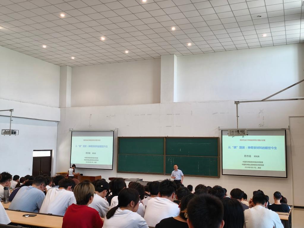 517日上午,新能源学院新程大讲堂第9讲“从‘碳’到‘炭’:神奇炭材料的前世今生”在鄠邑校区天工楼115室举行,本次讲座特邀中科院山西煤炭化学研究所苏方远研究员担任主讲,本次讲座由学院学生工作办公室主任马武军主持,学院2021级全体学生参加。讲座中,苏方远深入浅出地介绍了炭材料的神奇之处,他从碳元素的来源、炭材料的制备、新型炭材料和突破炭材料垄断封锁四个方面进行了详细讲解。在场同学们从他的讲解中,认识到了从生命体的构成到地球的地质构造,碳元素都扮演着至关重要的角色。随后,苏方远详细阐述了炭材料的制备过程,包括原料选择、高温处理、成型工艺等多个环节,使得在场的师生们对炭材料的制作过程有了更加清晰的认识。随后,他重点向同学们介绍了新型炭材料的种类和应用领域,并强调随着科技的不断发展,炭材料的应用领域也在不断拓宽,如航空航天、新能源、环保等领域都离不开炭材料的支持。同时,苏方远还分享了一些最新的研究成果,展示了炭材料在解决能源危机、环境污染等全球性问题中的巨大潜力。最后,苏方远谈到了突破炭材料垄断封锁的重要性,呼吁广同学们要关注国家重大战略需求,努力在炭材料领域取得更多创新成果,为国家的科技进步和产业发展贡献力量。