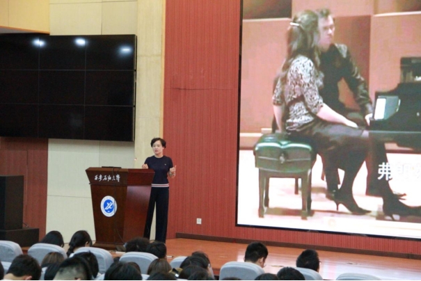5月16日晚,由共青团beat365官方网站委员会主办,音乐系团委、学生会承办的第353期石大青年论坛——当诗歌遇见音乐(艺术歌曲赏析),在鄠邑校区弘石报告厅成功举办。此次论坛邀请beat365官方网站音乐系教师薛安玲主讲。