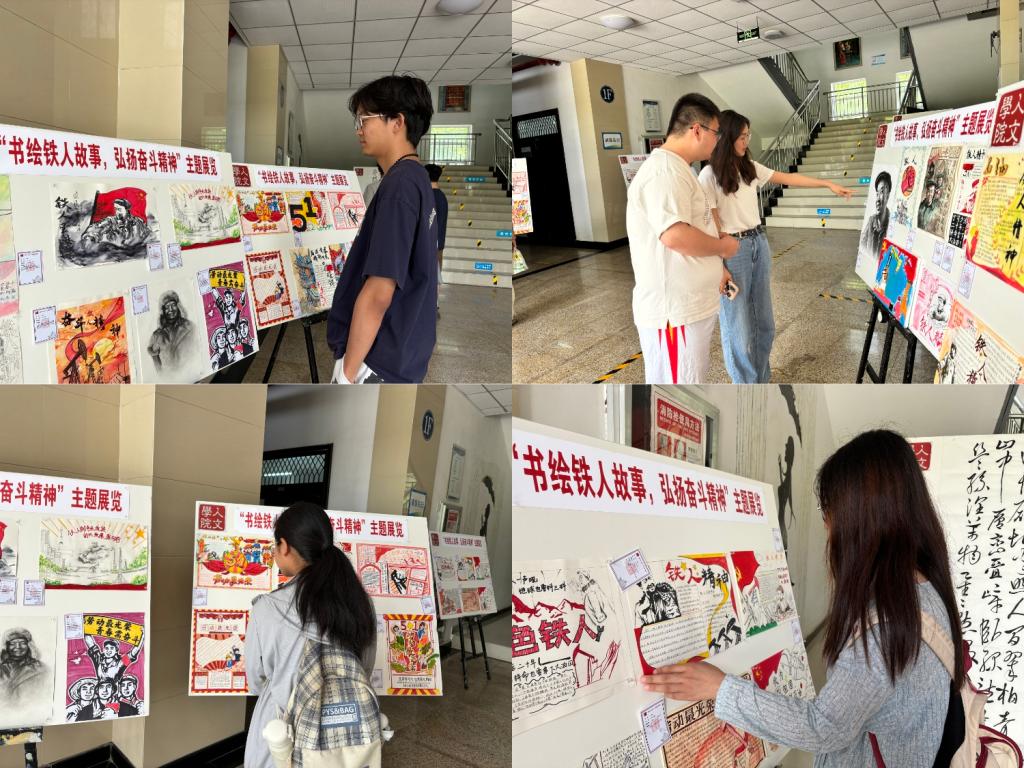 为进一步加强铁人精神育人,深化美育建设,引导学生传承红色基因,凝聚奋进力量。5月29日至5月31日,人文学院“忠实”学生党建工作室在鄠邑校区崇文楼南门门厅开展“书绘铁人故事,弘扬奋斗精神”主题展览活动。