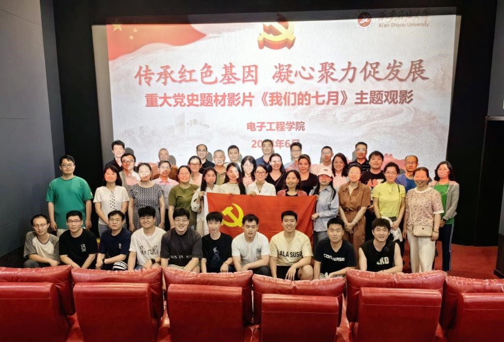 为巩固拓展学习贯彻习近平新时代中国特色社会主义思想主题教育成果,推动党史学习教育工作常态化、长效化,6月7日下午,电子工程学院党委开展了“传承红色基因 凝心聚力促发展”主题党日观影活动,组织学院师生党员代表集体观看了重大党史题材影片《我们的七月》。