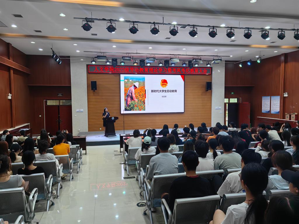为进一步营造良好的学习氛围,推进学院学风建设及班级建设,通过“劳动教育”全面育人、综合育人、实践育人,促进学生全面发展。6月12日下午,人文学院2022级、2023级分别在崇文楼118及博览楼A139召开劳动教育理论学习暨考风考纪教育大会,2022级、2023级全体学生出席,辅导员范嘉欣、王凯杰主持。