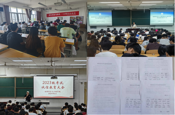 为持续强化学院学风建设,切实增强考生遵纪守法、诚信考试的意识,端正考试风气,严肃考试纪律,营造公平有序的考试氛围,6月12日至13日,地球科学与工程学院各年级分别于开物楼311教室、博览楼134、239教室开展了诚信考试教育大会,大会由各年级辅导员主持,学院全体学生参加。