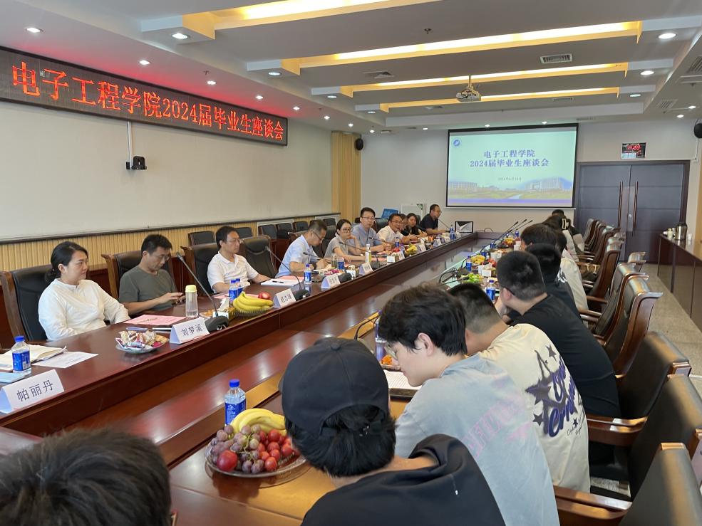 为表达学院对毕业生的深厚情意和美好祝愿,倾听毕业生对学院高质量发展的建议意见,切实提高学院“三全育人”的针对性和实效性,6月14日下午,电子工程学院在鄠邑校区图书馆第二会议室召开2024届毕业生座谈会。学院全体党政领导出席座谈会,教师代表、毕业班辅导员以及2024届本、硕毕业生代表20余人参会,座谈会由学院党委副书记芮执根主持。