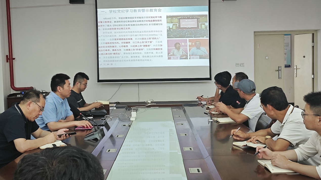 李庆本首先向与会党员传达了学校6月13日召开的党纪学习教育警示教育会相关精神,介绍了陕西省纪委监委驻省教育厅纪检监察组组长赵军所作的题为《学纪律处分条例 做廉洁自律标杆》专题辅导报告会相关内容,学习了赵军组长关于高校领导干部在履行职责中应该做到的五个方面要求以及校党委书记常江就进一步推动学校党纪学习教育和“三风”建设工作走深走实提出的三点意见。