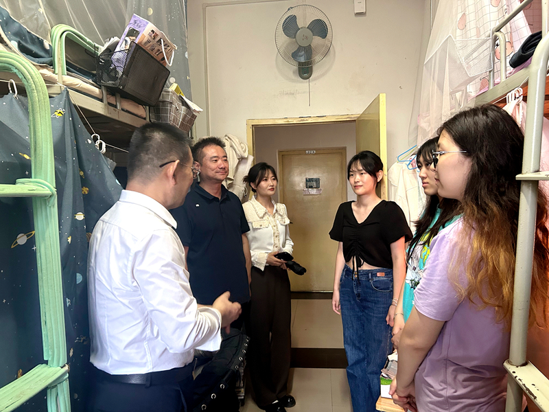 6月21日下午,计算机学院党委书记庞秉谦、党委副书记庞远、学工办主任乔晓、2024届本科生辅导员刘亭普深入宿舍与学生话别。