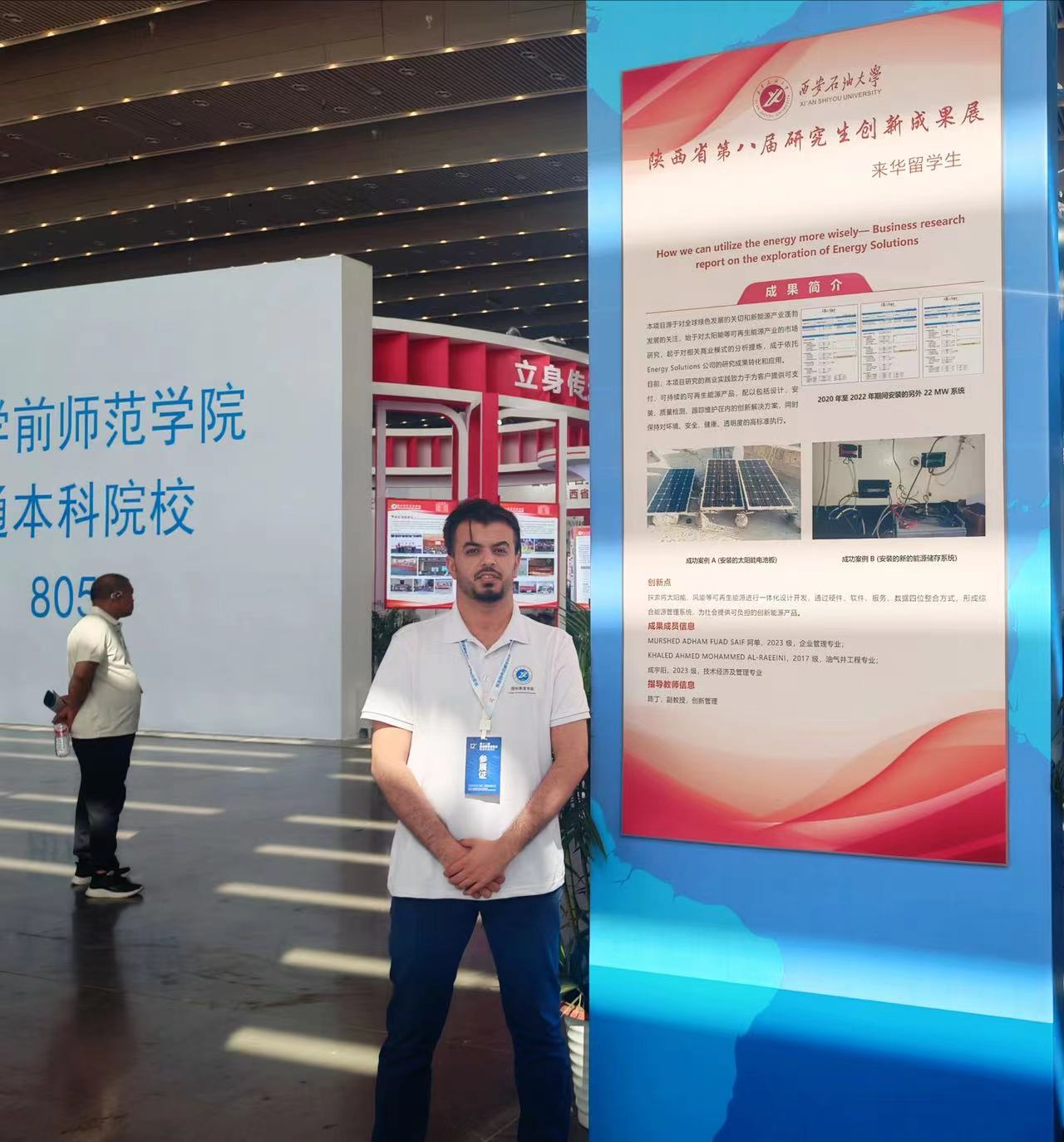 在陕西省第八届研究生创新成果展上,beat365受邀参展。由beat365也门留学生阿单组队带来的“Exploration of Energy Solutions”项目致力于探索能源解决方案,是推动解决能源问题实现可持续发展的有益尝试。展会彰显了我院国际学生在能源领域的探索精神和学术实力。
