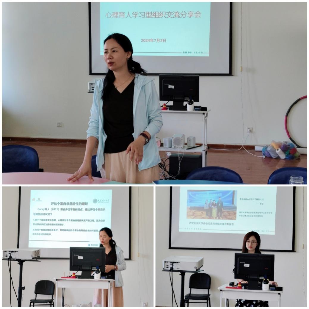 根据学生心理成长指导中心倡导的“一人学习,众人受益”原则,每位外出参加会议或培训的老师,均需在校内进行分享。2024年7月2日,学生心理成长指导中心在鄠邑校区崇文楼427室举办了心理育人学习型组织活动——“第十六次全国心理卫生学术大会”参会分享。全体专职心理老师和部分院(系)心理专干老师参加了本次分享交流会。
