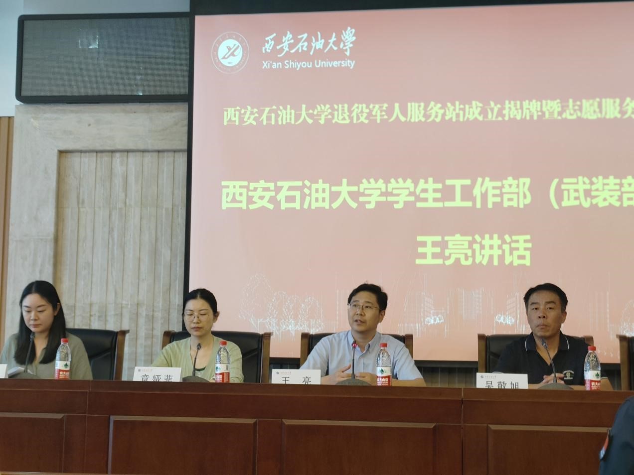 王亮在揭牌仪式中表示,学校将通过退役军人服务站平台,召集一批优秀的退役大学生及拟应征入伍的在校生,组建起一支充满活力的队伍,全力打造有党味、有军味、有情味、有铁人精神之味的“退役军人之家”,培育先进典型,树立学院军人榜样,形成西石大的独特品牌。同时,也希望广大退役大学生士兵能够继续保持“离军不离党、退役不褪色”的本色,不断践行“传承军魂、奉献社会、勇于担当、团结奋斗、崇尚荣誉”的退役军人志愿服务精神,带动广大青年争做“四实一新”好青年。
