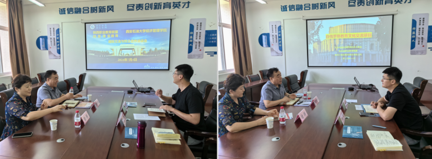 为持续做好毕业生就业工作,经济管理学院提早谋划、主动作为,深入推进2025届毕业生就业工作,7月4日,学院邀请陕西省职业教育联盟秘书长常明辉、西安市驻白俄罗斯商务代表处教育总干事徐浰等一行来校洽谈国际交流与校企合作相关工作。经济管理学院学生工作办公室主任李博文、2021级辅导员刘清参加会议。