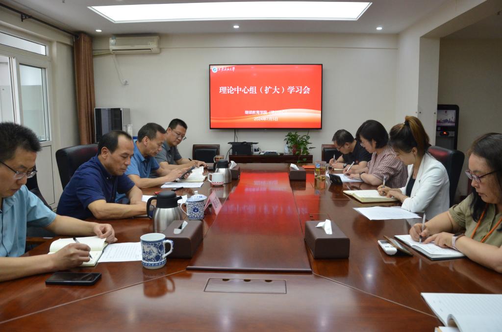 7月5日下午,继续教育学院(培训中心)党总支理论学习中心组(扩大)学习会在学院114会议室召开,校党委委员、宣传部部长赵承胜旁听督导。党总支书记张凌寒主持会议,学院党总支理论学习中心组全体成员参加会议。