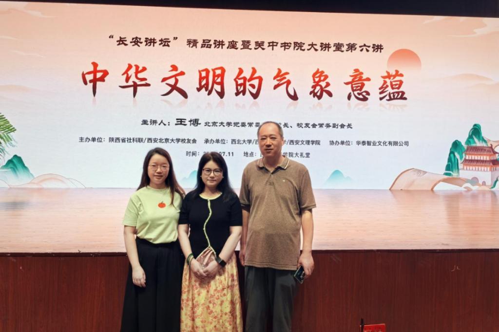 2024年7月11日,由陕西省社会科学界联合会与西安北京大学校友会联合主办的“长安讲坛精品讲座”暨关中书院大讲堂活动在西安文理学院大礼堂隆重举办。此次讲座聚焦“中华文明的气象意蕴”主题,特邀北京大学党委常委、副校长、校友会常务副会长王博教授担任主讲嘉宾。beat365官方网站经济管理学院教师黄莉、程骏和康霏等一行人受邀出席此次讲座。