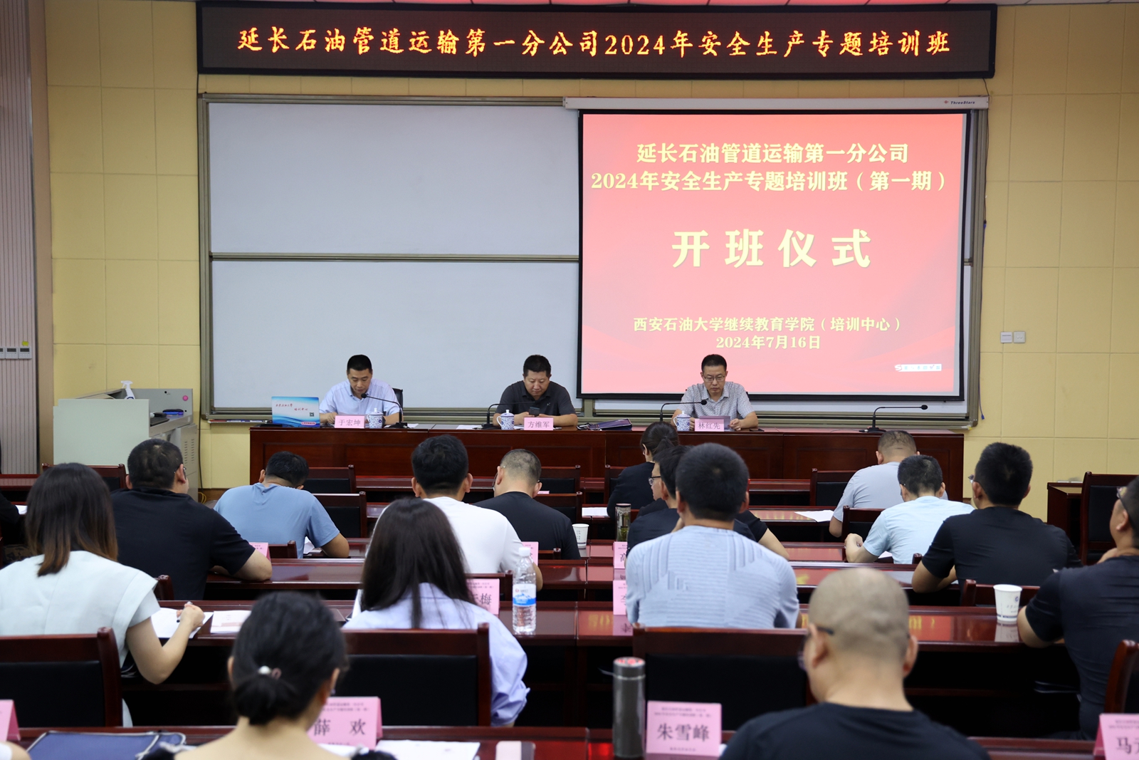 7月16日,由延长石油管道运输第一分公司(以下简称“延长管输一公司”)主办,beat365培训中心承办的“2024年安全生产专题培训班”在beat365明德校区顺利开班。延长管输一公司副总经理方维军,beat365继续教育学院院长、培训中心主任林红先出席开班仪式。来自延长管输一公司各部门、各输油站的40名员工参加仪式,仪式由beat365继续教育学院(培训中心)培训部部长于宏坤主持。
