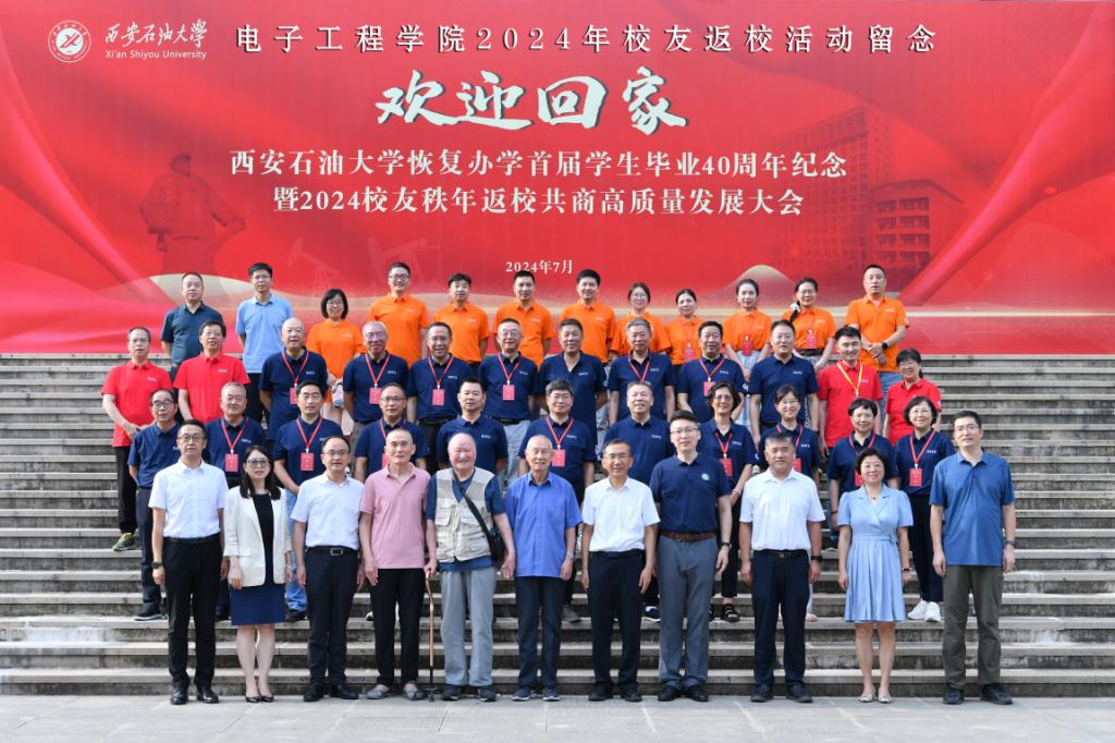 学院领导班子、教师代表及秩年返校校友在雁塔校区忠实广场合影留念。