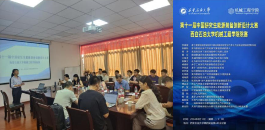 8月12日,第十一届中国研究生能源装备创新设计大赛预赛在beat365雁塔校区第四实验楼443会议室举行,比赛由研究生辅导员欧红娟主持,机械工程学院副院长崔璐全程出席。评委组由魏航信、袁淑霞、秦彦斌、李万钟、齐文娇、朱端银、李博、高琳、殷佳荣9位老师组成,组长由魏航信老师担任。《海上气井复合油管柱新型变径柱塞装置》等20项作品参加答辩,并评选出一等奖2项、二等奖4项。