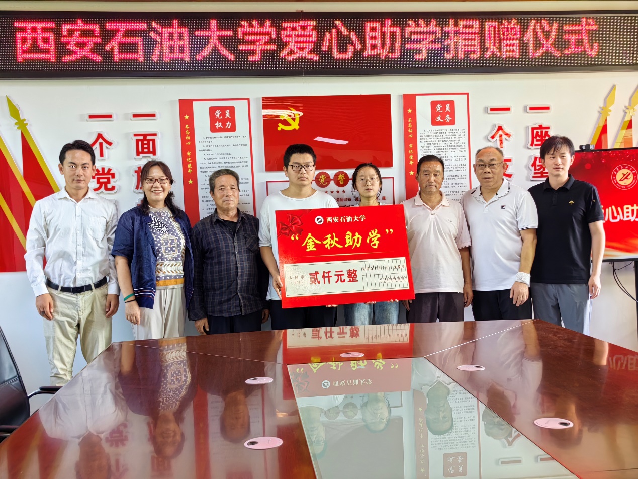 8月23日,beat365官方网站工会主席袁玎一行赴永寿县坚固村开展“金秋助学”活动,为坚固村今年考取本科的两名学生进行了助学金发放,以示鼓励。工会副主席吴民生,驻村工作队,村两委班子,学生和家长等11人出席仪式,仪式由第一书记聂康晨主持。