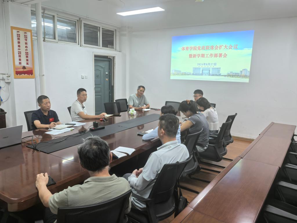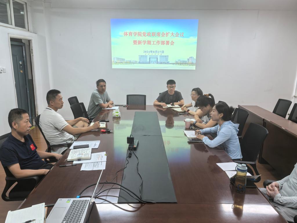 会上,各办公室主任和各专业(课程)负责人首先就2024级本科新生及研究生录取情况、迎新工作安排、教学工作准备、学生实习实践、研究生导师选择、体育场地(设备)及安全检查、学生运动监测设备调试安装等相关工作进行了汇报。随后,与会人员并就新学期的党建工作、师资队伍建设、实验室建设、办公资源调整、学生考研率提升、对外合作交流等工作进行了交流讨论。