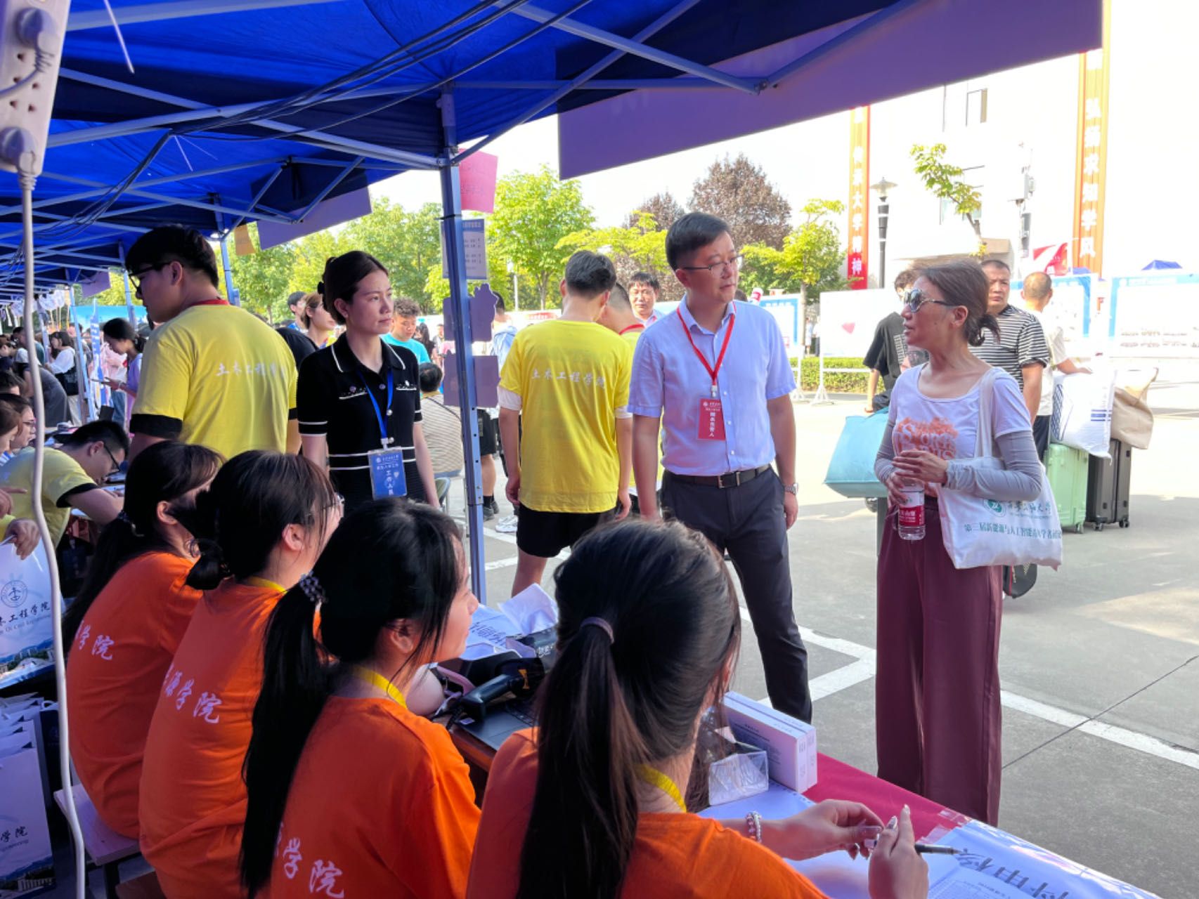 在迎新现场,团委、学生会成员和党员学生志愿者身着统一服装,穿梭在报到现场、学校大门、宿舍门口等各个角落,为新生提供行李接送、秩序维持、签领物资、校园引导等“一站式”暖心服务。迎新现场紧张有序,学生们用实际行动和热情服务彰显了石油学子的风采与担当。新生报到期间,学院领导班子成员深入迎新一线,慰问工作在一线的老师和学生志愿者,勉励全院师生共同努力,细致热情地解决新生报到过程中遇到的困难和问题,努力做到让学生满意,让家长放心。