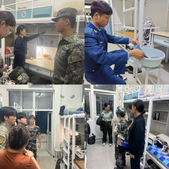 在宿舍内务整理中,退役大学生士兵们积极同本院系参训干部沟通交流,课余时间主动深入宿舍,指导学弟学妹们完成宿舍内务工作。他们根据宿舍内务规范标准,身体力行示范“豆腐块被子”的内务整理标准,协助参训干部完成学生宿舍内务检查工作。学弟学妹们不仅感受到了军人雷厉风行的工作作风,还保持了干净整洁的室内卫生。