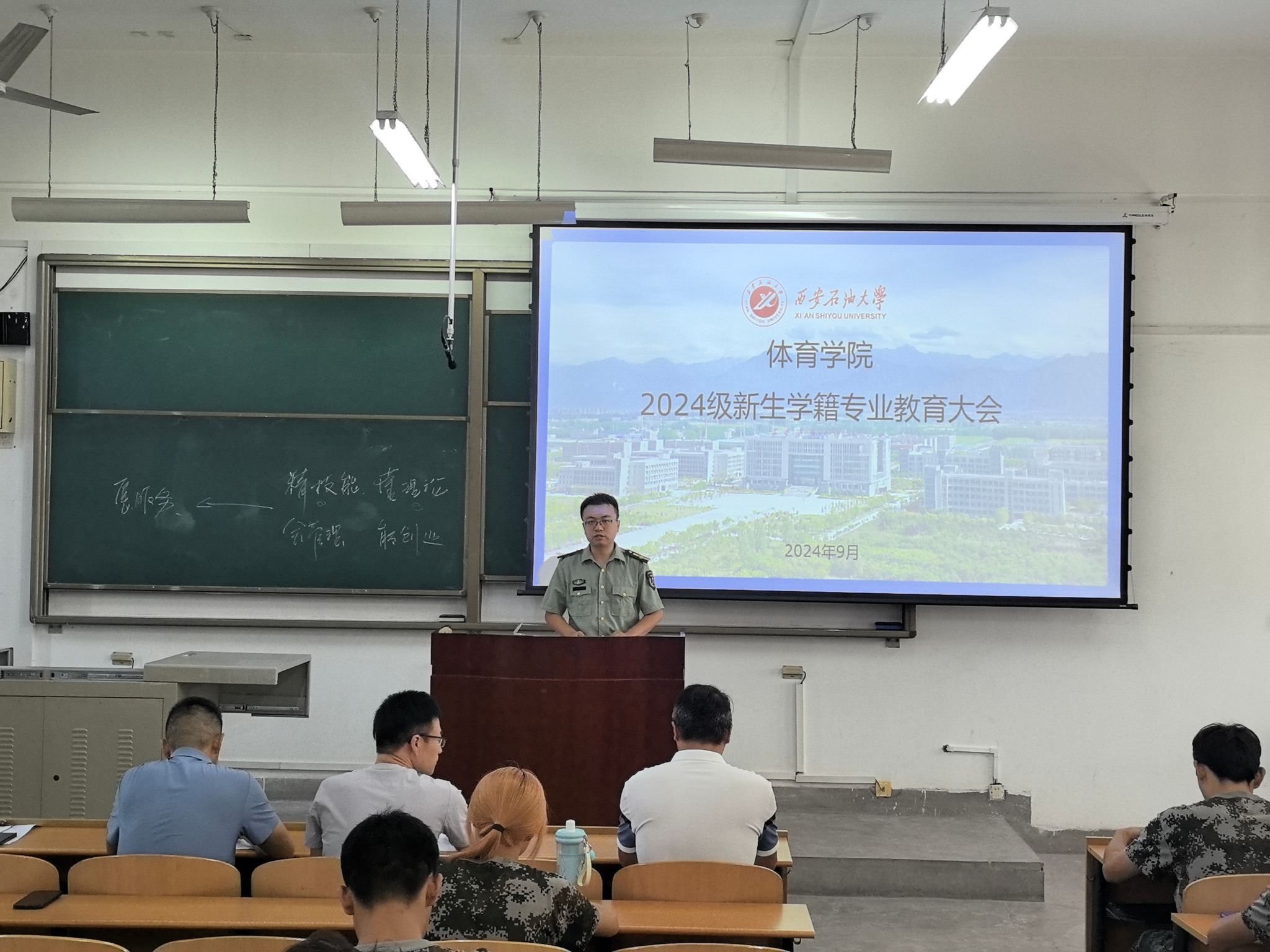 为指导和帮助2024级新生尽快了解和适应新环境,熟悉所学专业的培养目标、培养方式和毕业要求,更好地了解本科学生学籍管理条例、纪律处分条例及奖助条例,做好学业规划,快速适应大学学习,促进学风建设。9月8日下午,体院学院在鄠邑校区博思楼317教室召开2024级新生见面会暨学籍专业教育大会。学院党总支书记苟毅飞、院长李寿邦、社会体育指导与管理专业教研室主任胥山出席大会,会议由2024级新生辅导员张泽正主持。