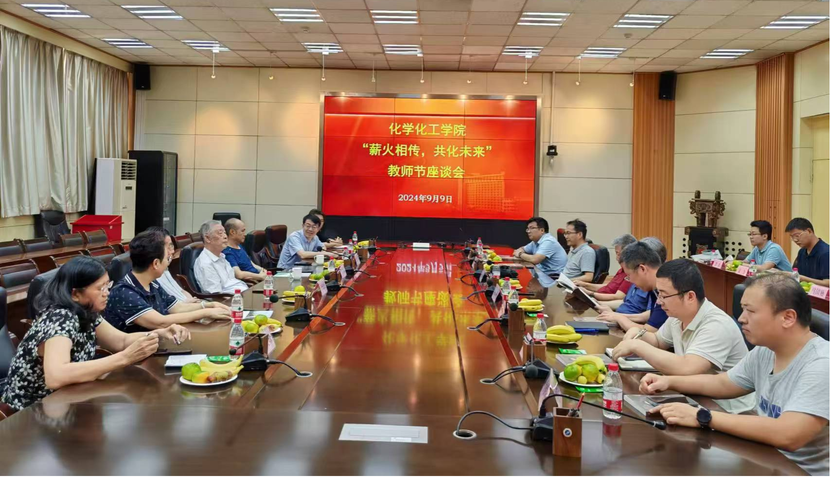 在第40个教师节来临前夕, 9月9日下午化学化工学院在雁塔校区会议中心第二会议室举办“薪火相传 共化未来”教师节座谈会。学院近年来退休的老教师代表、学院领导班子成员、教工党支部书记、各系主任和青年教师代表参加会议,座谈会由学院党委书记高小明主持。