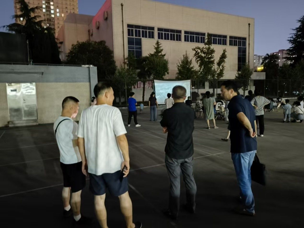 秋高气爽,云淡风轻,为响应西安市雁塔区文化和旅游体育局关于开展“文化惠民系列之公益电影进社区”活动号召,丰富beat365师生、居民业余文化生活,后勤处于9月19日在雁塔校区学生食堂西侧球场举办公益电影放映活动,100余名师生居民到现场观影。
