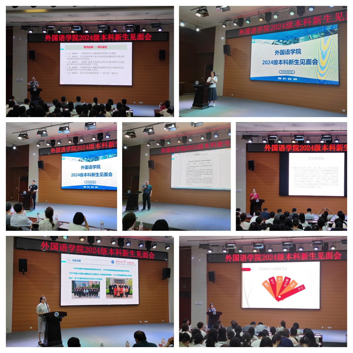 为让2024级新生尽快融入大学生活,进一步做好学业规划,增强学生的专业自信、专业认同,9月19日,外国语学院在鄠邑校区崇文楼118召开2024级本科新生见面会。学院党委书记张建高、副书记王业青、副院长陈武、英语系主任钟泽波、翻译系主任秦艳霞、各系部骨干教师代表、新生辅导员以及全体2024级本科新生参加会议。大会由学院党委副书记王业青主持。