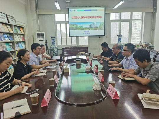 2024年9月20日,西北大学碳中和学院建设工作领导小组办公室主任陈京京、陕西省碳中和技术重点实验室副主任谢钢、王伟教授一行5人来beat365新能源学院就人才协同培养、资源共享、平台共建等方面开展合作交流。新能源学院党委书记廖敏、院长宋海洋以及学院相关教师参加座谈会。