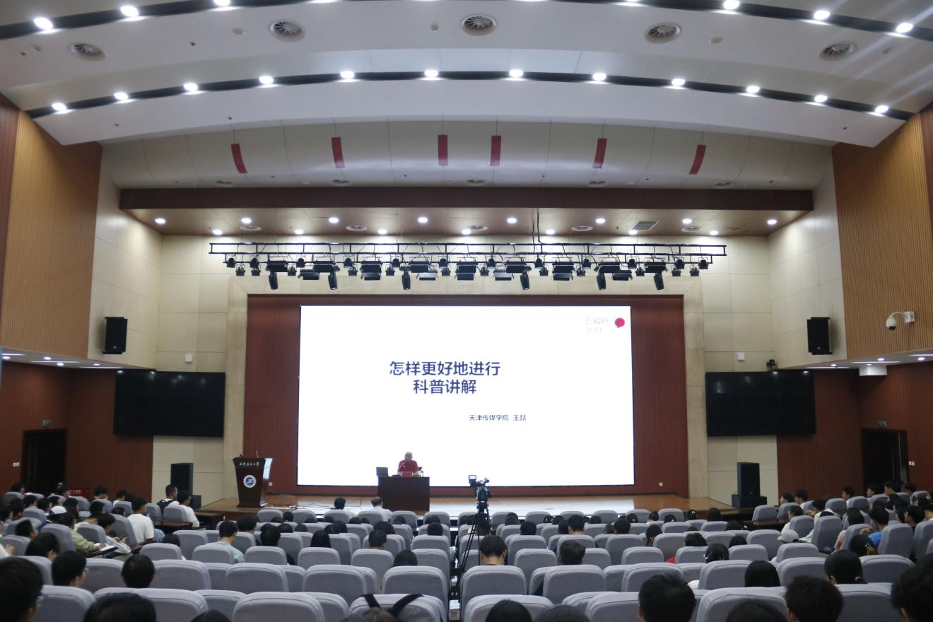 王喆结合多年来丰富的一线工作经验,从科普讲解概念、科普讲解的目的、科普讲解的总体要求、科普讲解构成要素、科普讲解的有声语言表达等方面对如何更好地进行科普讲解进行了详细的阐释。他指出,科普讲解的全称是“科学普及讲解”,又称“大众科学讲解”或者“普及科学讲解”,特别以全国科普讲解大赛为范例,着重强调做好科普讲解一定要注意文本写作的严谨性、趣味性,语言表达的丰富性、多样性,PPT创作的多彩性、清新性,音乐配合的烘托性、准确性。同时希望同学们能够以《中国公民科学素质基础》为标准,不断了解和领悟中华优秀文化,增强综合素养。最后,他与现场同学们进行了深入的互动交流,对大家的提问逐一进行了解答。