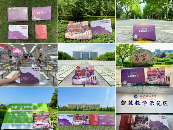 以校花紫叶李为主色调,融入恢弘壮观的校园地标建筑,在巍巍秦岭峰峦叠嶂的映衬下,凸显学校的博大与广阔,彰显西石大人能源报国、能源强国的坚定信念,以“大秦岭+紫叶李=九月有你”为主题的录取通知书文案和视频在网络刷屏,受到考生和社会广泛好评,累计阅读量突破10万次。