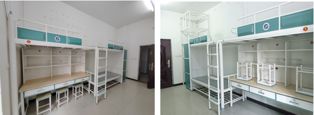 9.学生公寓改造。鄠邑校区7-11号学生公寓楼公共区域、部分毕业生宿舍墙面粉刷及设施维修,约24465.24平方米。改造后,不仅提升了楼体的美观度,更为同学们提供了更加舒适的学习和生活环境。为了提升2024级新生宿舍储物空间,后勤处暑期购置并安装了834套行李架。每套可容纳四个大行李箱,采用上下双层设计,二氧化碳保护焊接,表面经多重工艺处理,环保健康,无异味甲醛。鄠邑校区1至4号公寓楼西侧新建了电动自行车停车棚及充电桩,有效缓解了周边乱停乱放和充电桩不足问题。车棚采用10×10厘米方钢结构,顶棚为蓝色隔热阳光板,安全稳固,外观美观。车棚总面积380平方米,新增144个充电端口。