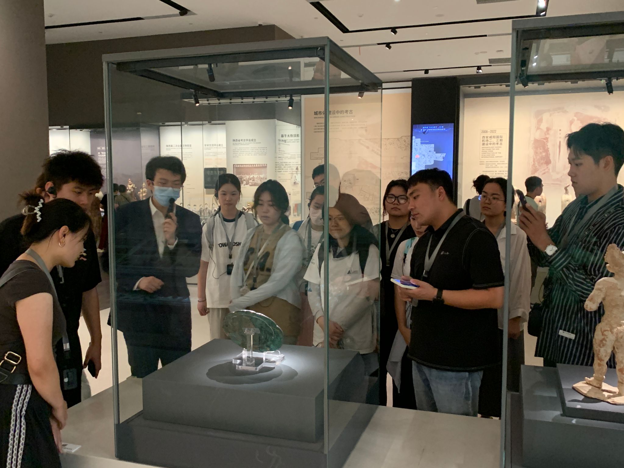 在讲解员的带领下,现场师生参观了“考古历程”、“文化谱系”、“考古发现”和“文保科技”四个展厅。通过5000余件精美文物,开展了一场与文物生命、考古魅力的近距离对话,同学们认真聆听讲解员的精彩介绍,全神贯注地观察每一件珍贵文物。从天宝物华秦地到山壮河阔关中,从昭陵六骏武勇到大唐三藏文雄,无一不被中华文化的魅力所吸引,深刻感受到了中华文明的灿烂辉煌。