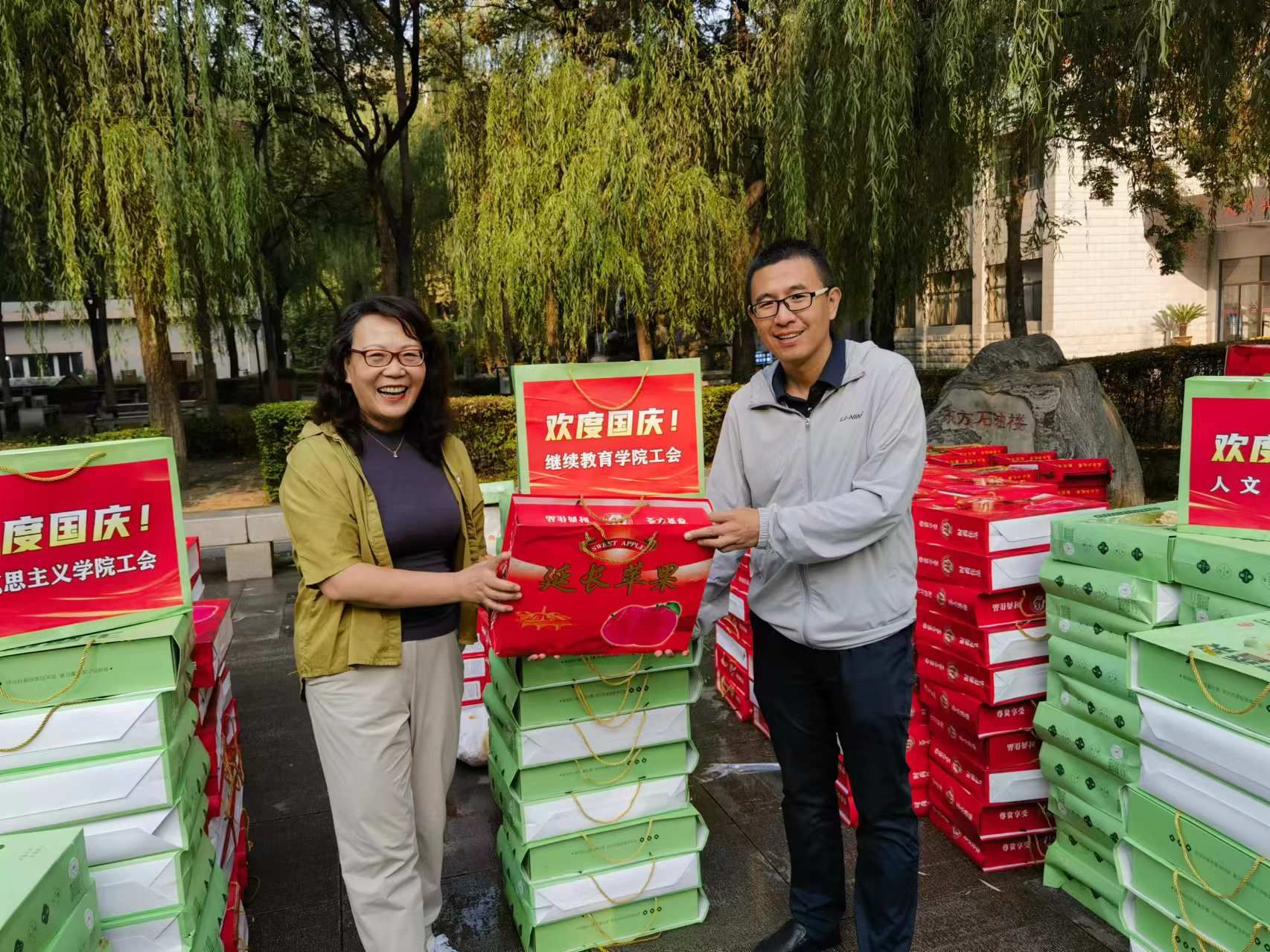 为积极响应陕西省教育工委关于全省教育系统“消费帮扶金秋行动”的精神,促进定点帮扶县特色优质农产品销售,发挥产销对接在消费帮扶中的重要作用,加快延长县乡村振兴增收步伐,9月26日上午,在雁塔校区忠实广场,校工会袁玎主席代表学校向广大教职工发放从延长县选购的优质农产品,向辛勤工作的全校教职工表达“三节”的慰问,同时向全校教职工送上节日的衷心祝福。