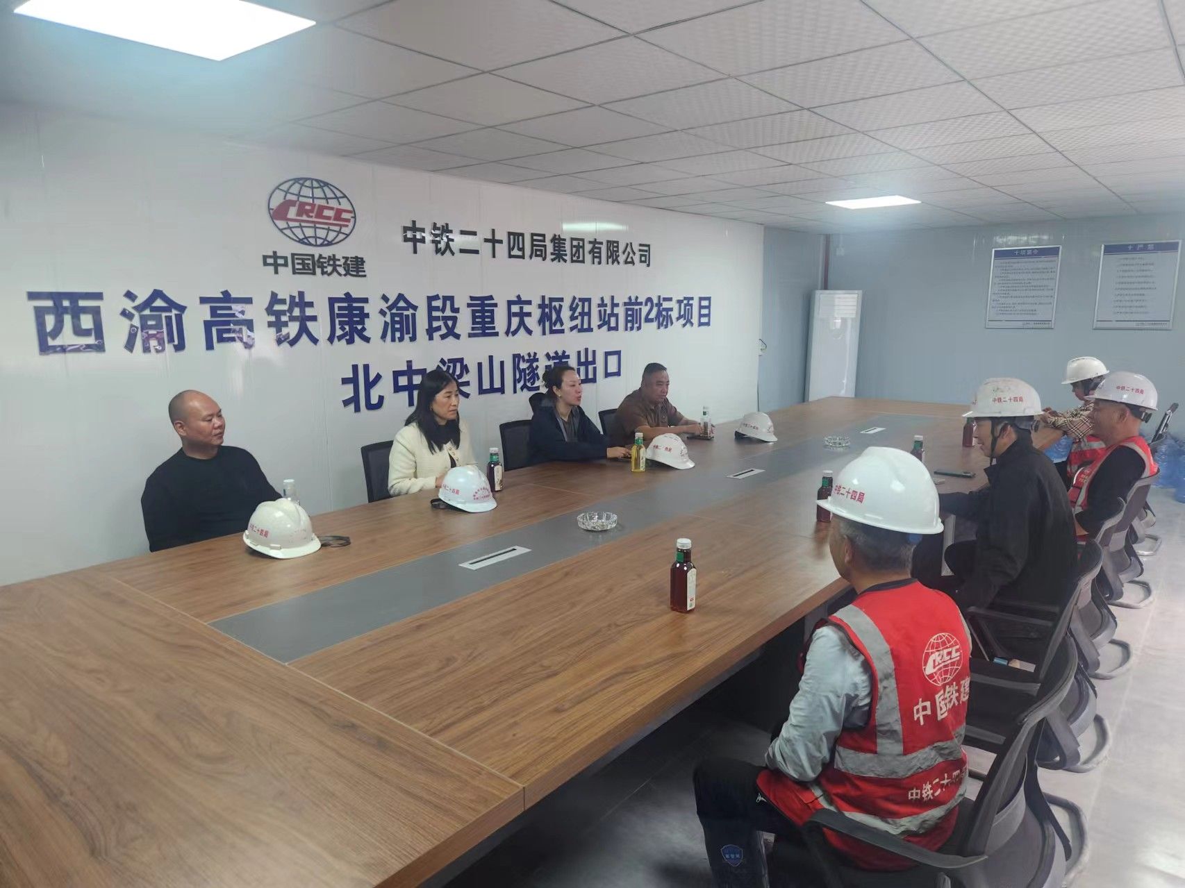 受中国中铁二十四局集团有限公司邀请,2024年10月3日,土木工程学院党委书记、副院长贾莉娜一行4人赴中国中铁二十四局集团有限公司西渝高铁康渝段重庆枢纽站前2标项目经理部二分部(以下简称项目部)开展“访企拓岗促就业”专项工作,双方进行了交流座谈。项目经理李积文、项目副经理王世洪等相关人员参加了座谈会,座谈会由李积文主持。