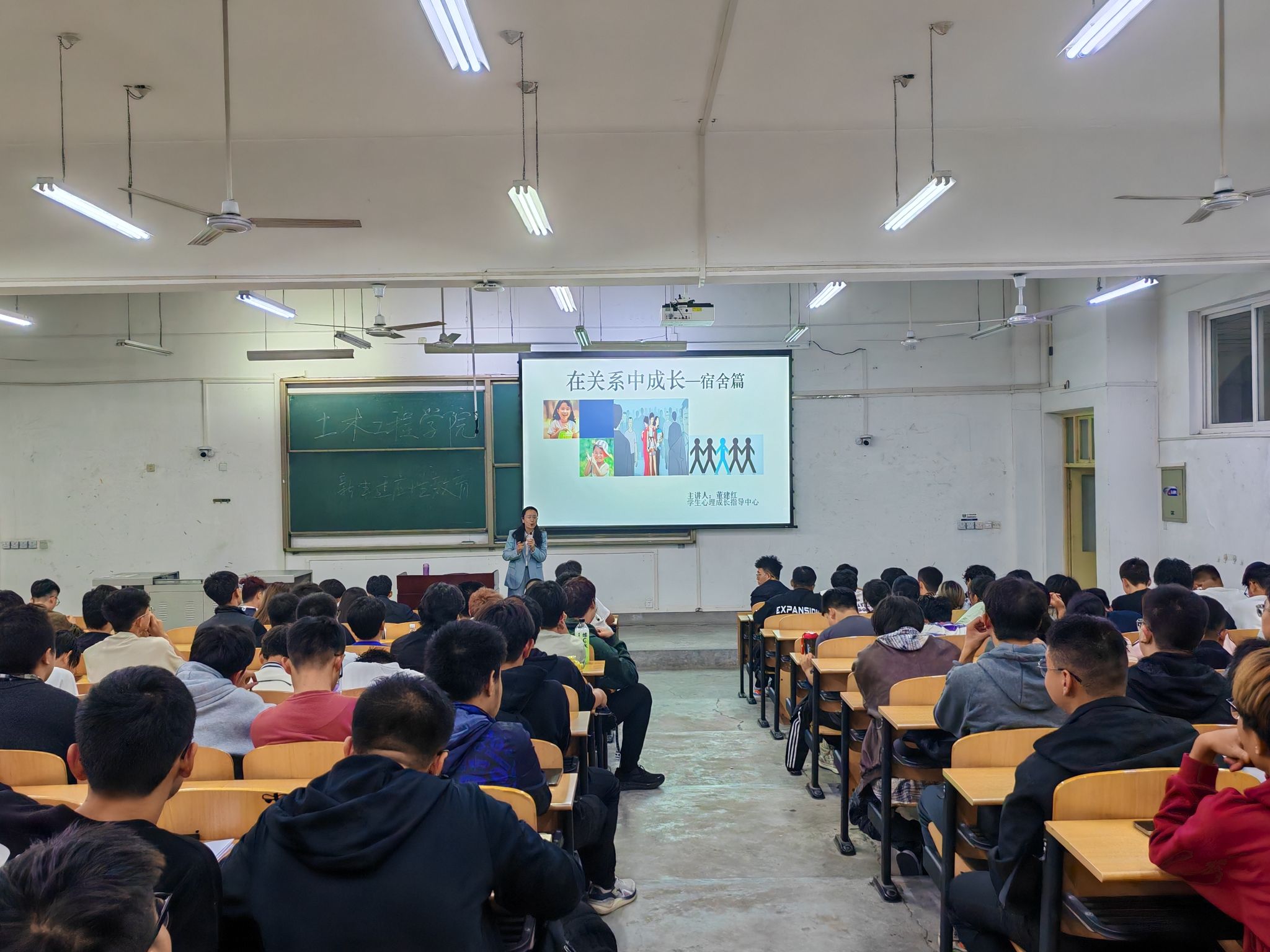 报告会上,董建红作了自我介绍,并详细介绍了学生心理成长指导中心的工作理念和中心工作,并为大家介绍了心理咨询的预约途径和方法。随后,董建红以“在关系中成长——宿舍篇”为题做了专题辅导报告,她从宿舍人际关系的烦恼、处理人际关系的思维方式、处理人际关系的“课题分离技术”以及在处理人际关系中变得成熟等四个方面,教会了同学们如何避免、处理以自我为中心带来的人际关系困扰,为同学们分析出了不同心理健康状况的表现与应对策略,还为同学讲授了快速掌握、处理宿舍人际关系的相关心理学基本知识。报告会后,董建红与同学们进行了沟通和交流,对同学们的疑问进行了详细解答。