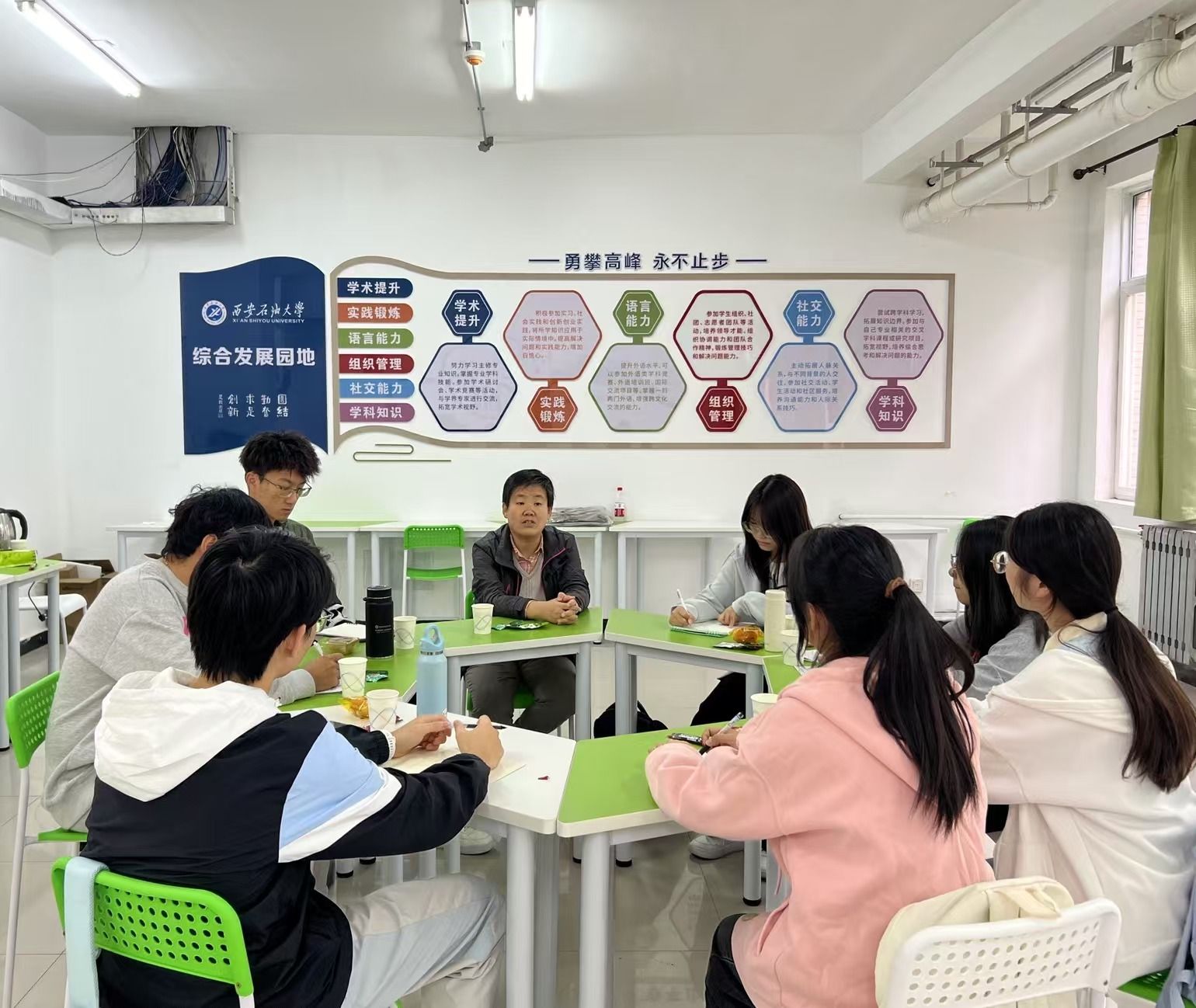 为增进同学们对学科竞赛的了解,鼓励学生积极参加学科竞赛,10月11日上午,化学化工学院在“一站式”学生社区——“综合发展园地”举办第五期“教授下午茶”活动。本期活动邀请到化学化工系刘菊荣老师做客,2023级学生代表参加。本次活动由学院2023级辅导员艾丽彼热·艾尔肯主持。