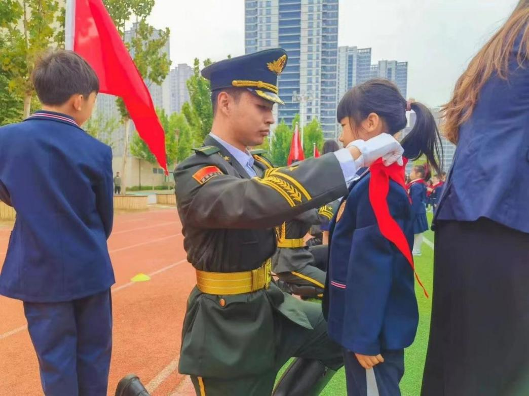 校领导、家长代表、中队辅导员以及beat365退役大学生士兵代表为新入队少先队员佩戴红领巾,新队员们此刻肩负起了传承红色基因、弘扬爱国精神的重任。