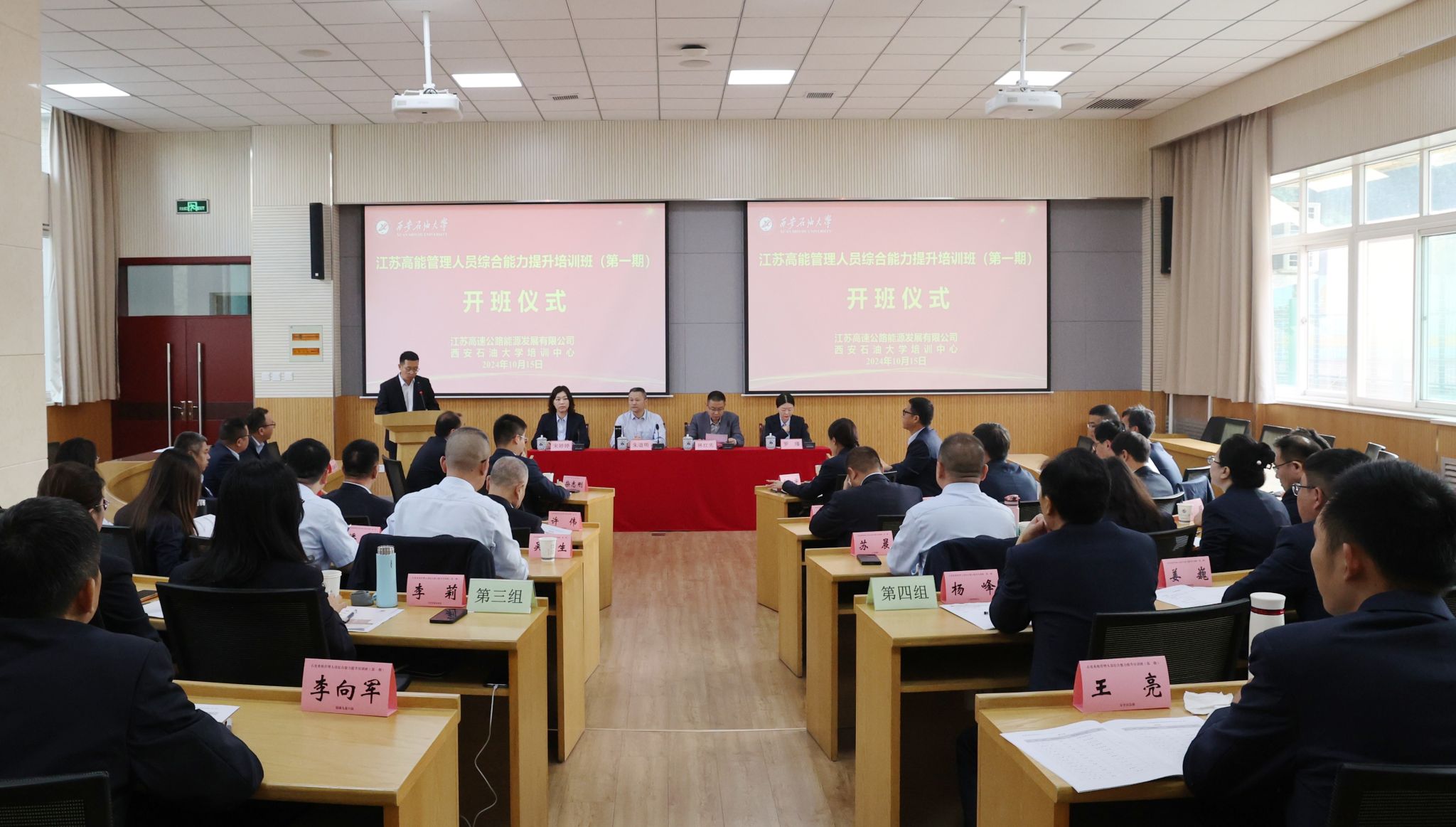 10月15日上午,由江苏高速公路能源发展有限公司(以下简称“江苏高能”)主办、beat365培训中心承办的“江苏高能管理人员综合能力提升培训班(第一期)”在明德校区顺利开班。江苏高能党委副书记、总经理朱道明,副总经理宋婷婷,纪委书记罗瑾,beat365继续教育学院(培训中心)院长(主任)林红先出席开班仪式。江苏高能50余名管理人员及加油站经理参加仪式。