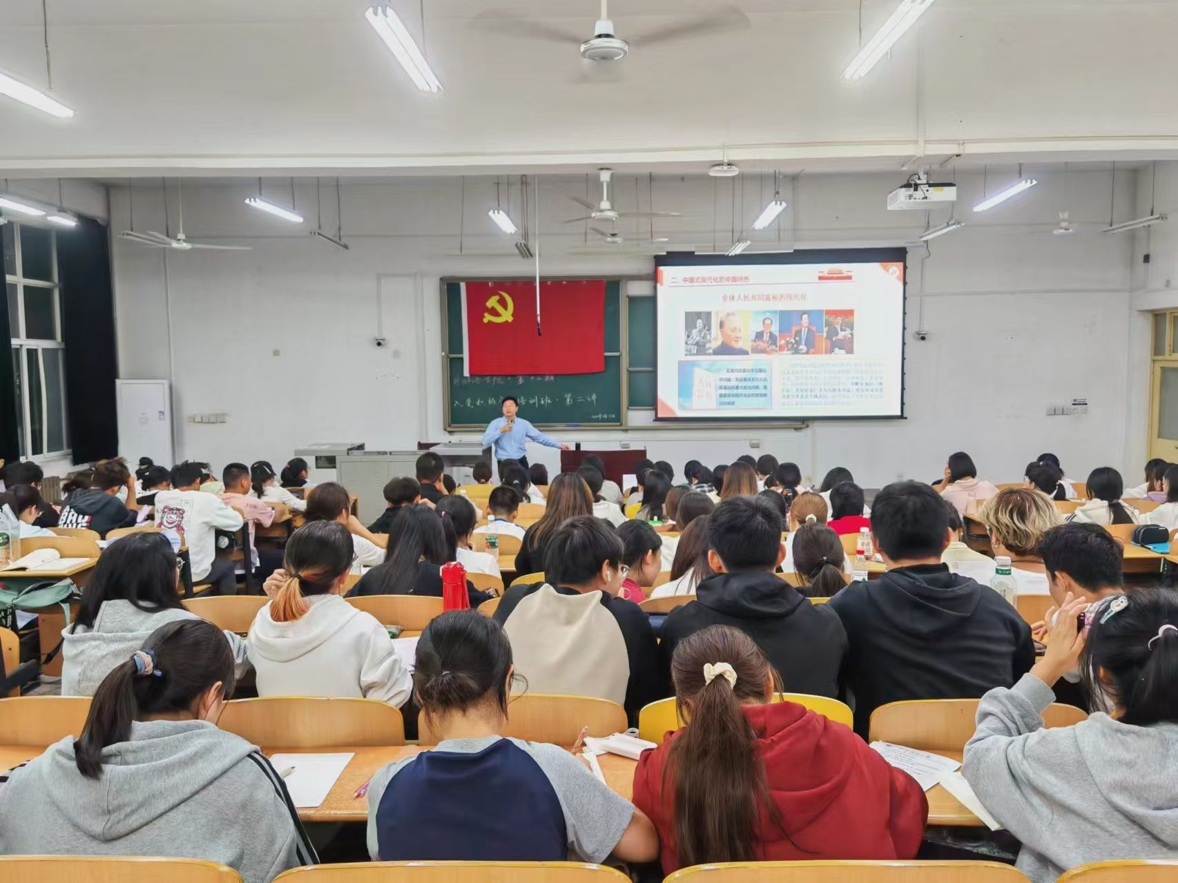 10月15日晚,外国语学院在鄠邑校区博思楼B214教室举办第13期入党积极分子培训班第二讲。校党委学生工作部部长、武装部部长、稳定安全办公室副主任、学生工作处处长(就业创业指导中心主任)王亮应邀担任主讲,学院2024年全体入党积极分子参加培训。
