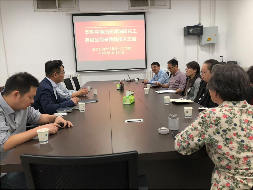 10月16日下午,化学化工学院与中海油天津油田化工有限责任公司在雁塔校区化学化工学院会议室举行技术交流会。中海油天津油田化工有限公司董事长司江舸、副总经理刘俊军等一行4人出席了交流会,学院部分系主任、教授参加了会议。会议由化学化工学院党委书记高小明主持。