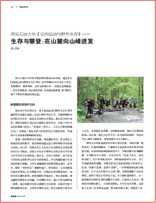 近日,由体育学院开设、刘翔老师主讲的《定向运动与野外生存》课程,被《教育家》杂志(2024年9月第4期),以标题《beat365官方网站〈定向运动与野外生存〉——生存与攀登:在山麓向山峰进发》刊登报道。